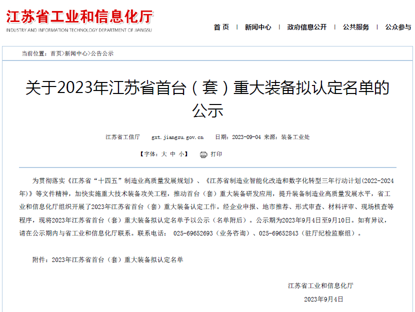 2023年9月4日,江蘇省工信廳對(duì)《2023年江蘇省首臺(tái)(套)重大裝備擬認(rèn)定名單》予以公示。中科煜宸的“大型智能激光同步送粉增材制造裝備”被認(rèn)定為江蘇省首臺(tái)套產(chǎn)品。(2018年,中科煜宸LDM8060金屬增材制造裝備獲江蘇省首臺(tái)套裝備認(rèn)定。)